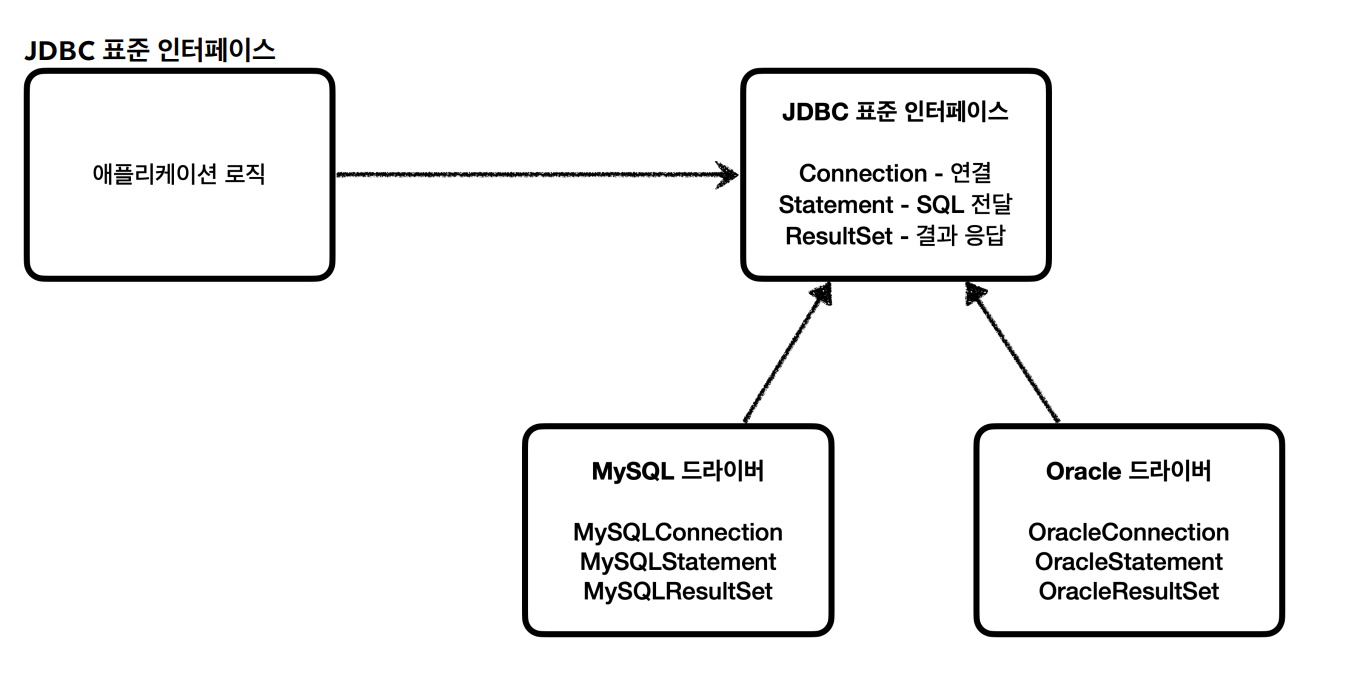 (DB driver란 아래 그림과 같이 JDBC 표준 인터페이스를 구현한 것)