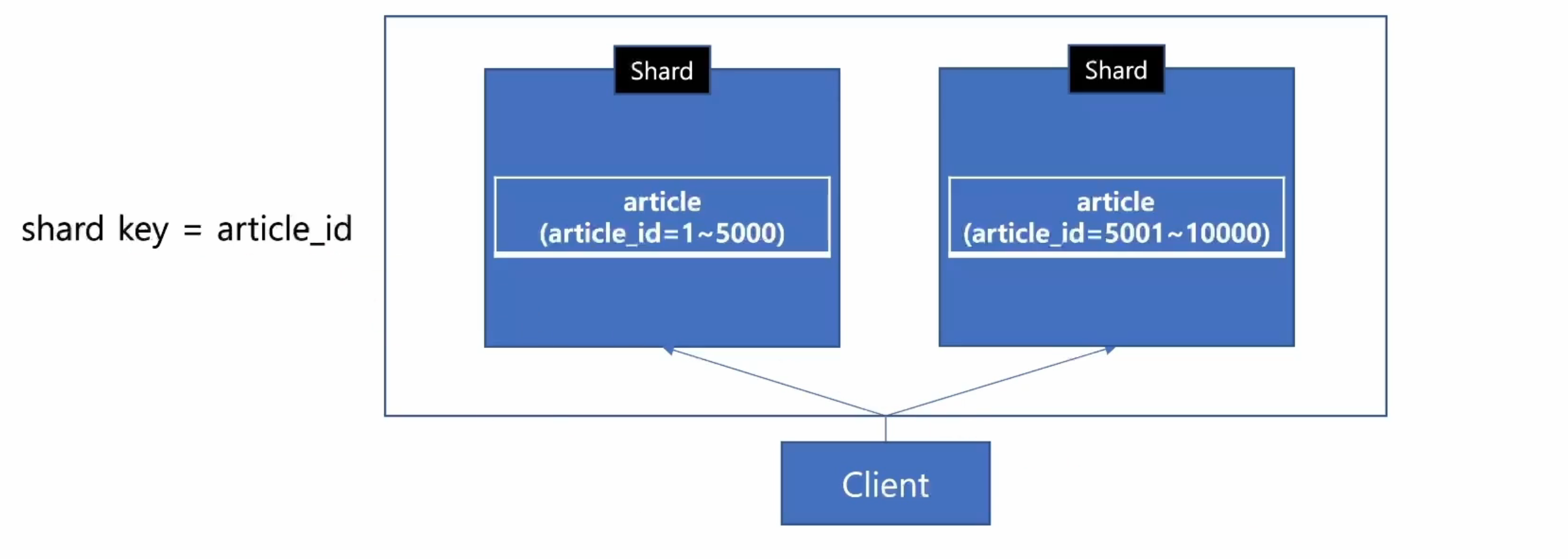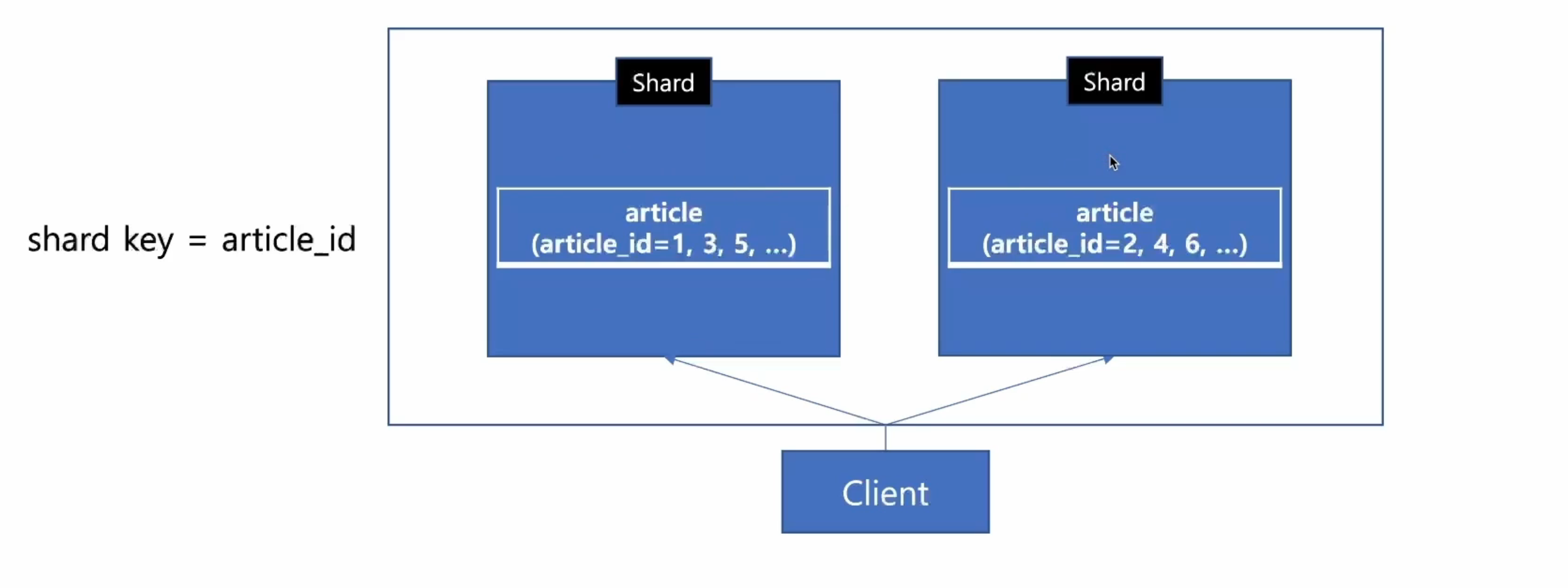 )๋ก ๋๋์ด ์ ์ฅํ๋ ๋ฐฉ๋ฒ (shard ๋ค : 1~1,000 ์๋ฒA, 1,001~2,000 ์๋ฒB)